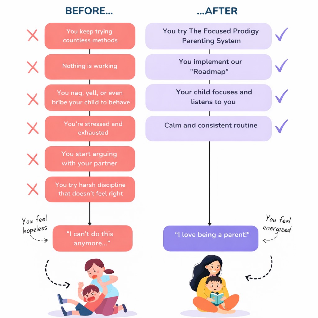 The The Focused Prodigy Parenting System is designed for children ages 4-16. The strategies are adaptable for different ages, and you'll learn how to modify them as your child grows.